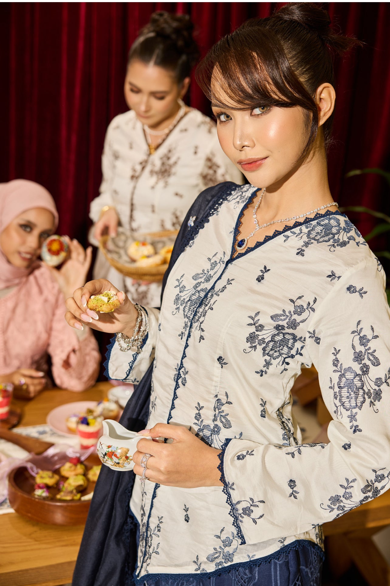 The Seroja Kebaya Set is crafted from premium embroidered tencel, designed for the woman who appreciates understated elegance. Featuring delicate floral embroidery set against a soft base, this piece embodies graceful femininity with a modern edge.